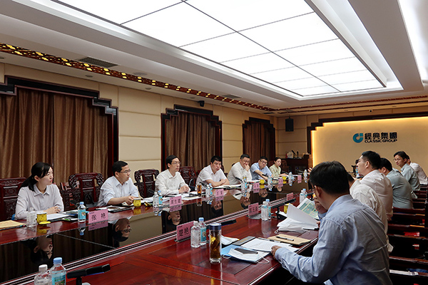 5月24日,濟(jì)寧市中級(jí)人民法院李勝良院長(zhǎng)一行到經(jīng)典集團(tuán)調(diào)研攀登企業(yè)工作。兗州區(qū)區(qū)委副書(shū)記于長(zhǎng)海、兗州區(qū)政協(xié)副主席、兗州工業(yè)園區(qū)黨工委書(shū)記、管委會(huì)主任郭玉清、兗州區(qū)法院院長(zhǎng)王燦,經(jīng)典集團(tuán)董事長(zhǎng)苗樹(shù)文等相關(guān)負(fù)責(zé)人陪同調(diào)研。