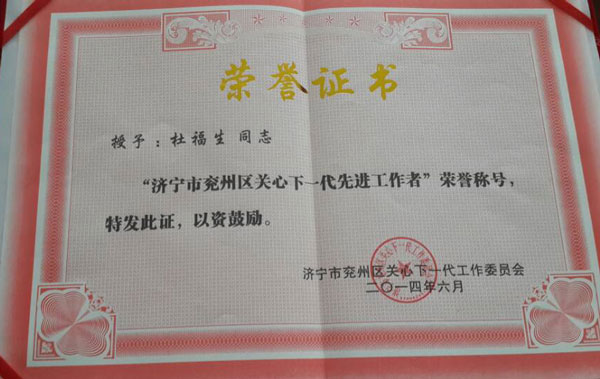 會上,經(jīng)典集團總經(jīng)理杜福生被授予“濟寧市兗州區(qū)關心下一代先進工作者”,并高度贊揚了先進工作者情系下一代、無私奉獻的精神。