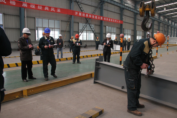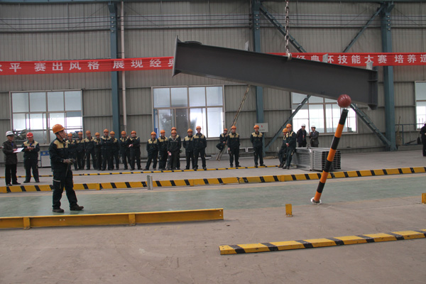 比賽在集團(tuán)公司輕鋼車間進(jìn)行。比賽活動(dòng)將理論學(xué)習(xí)和實(shí)踐操作相結(jié)合,就安全知識(shí)的理解、吊車性能的掌握、實(shí)際吊裝操作三項(xiàng)內(nèi)容進(jìn)行了競(jìng)賽。實(shí)際操作中設(shè)計(jì)了起吊鋼構(gòu)件撞球動(dòng)作,要求在規(guī)定的時(shí)間內(nèi)準(zhǔn)確完成技術(shù)動(dòng)作。經(jīng)過緊張而激烈的比賽和成績綜合評(píng)比,烤梁班組的馮勇獲得起重機(jī)技能比賽第一名,門焊機(jī)班組李寶光、烤梁班組的張世凱分別獲得起重機(jī)技能比賽第二名;組立機(jī)班組黃元德、拼裝班組孔祥文、史保健分別獲得起重機(jī)技能比賽第三名,并授予“青年崗位技術(shù)能手”榮譽(yù)稱號(hào);姜?jiǎng)倮?/SPAN>、顧凱、李小明、李慶分別獲得起重機(jī)技能比賽優(yōu)秀獎(jiǎng),并授予“技能操作優(yōu)勝者”榮譽(yù)稱號(hào)。