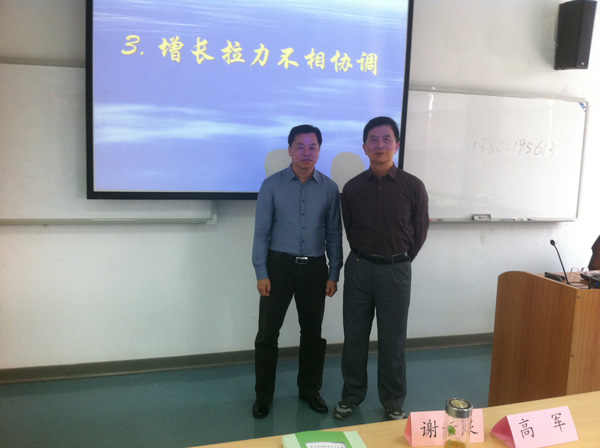 集團(tuán)公司總經(jīng)理杜福生與廈門大學(xué)統(tǒng)計(jì)系博導(dǎo)林擎國教授合影
