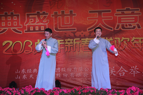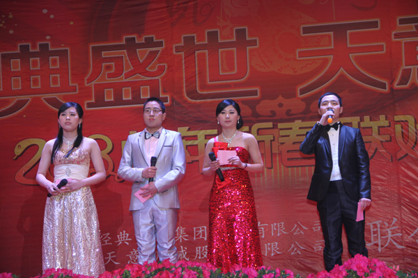 為了迎接2013年新春佳節(jié),給公司全體員工及家人們營(yíng)造歡樂(lè)愉快的節(jié)日氣氛,2月6日,由經(jīng)典集團(tuán)公司主辦的主題為2013“經(jīng)典盛世 天意騰飛”新春年會(huì),于集團(tuán)公司宴會(huì)廳熱烈舉行。公司各級(jí)領(lǐng)導(dǎo)、全體員工及員工家屬近千人共同參加了本次年會(huì)。