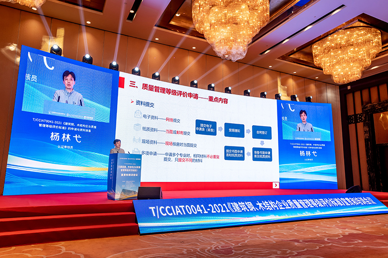 認(rèn)證審核員楊林弋對建筑鋼、木結(jié)構(gòu)企業(yè)質(zhì)量管理等級評價流程、資料情況進(jìn)行了介紹。