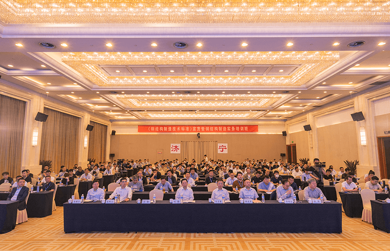 中國鋼結構協會常務副會長劉毅、中國寶武集團首席專家賀明玄、金環建設集團有限公司總工程師、副總裁張強、中冶建筑研究總院有限公司副總工程師吳耀華、中國鋼結構協會秘書長李慶偉、副秘書長戴長河、山東省鋼結構行業協會會長周學軍、副秘書長劉哲等領導專家出席活動,來自全國各地鋼結構制造企業的200余名代表參加培訓。