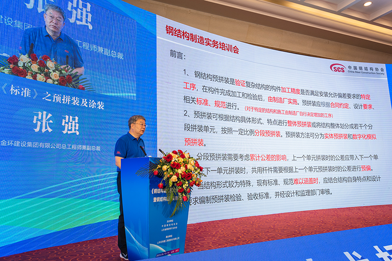 鋼結構加工制造工藝金環建設集團有限公司總工程師、副總裁張強講授《鋼結構制造技術標準》預拼裝、涂裝