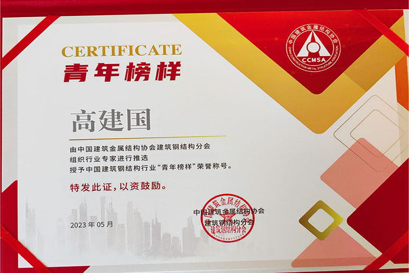 高建國(guó)同志榮獲中國(guó)建筑鋼結(jié)構(gòu)行業(yè)青年榜樣稱號(hào)