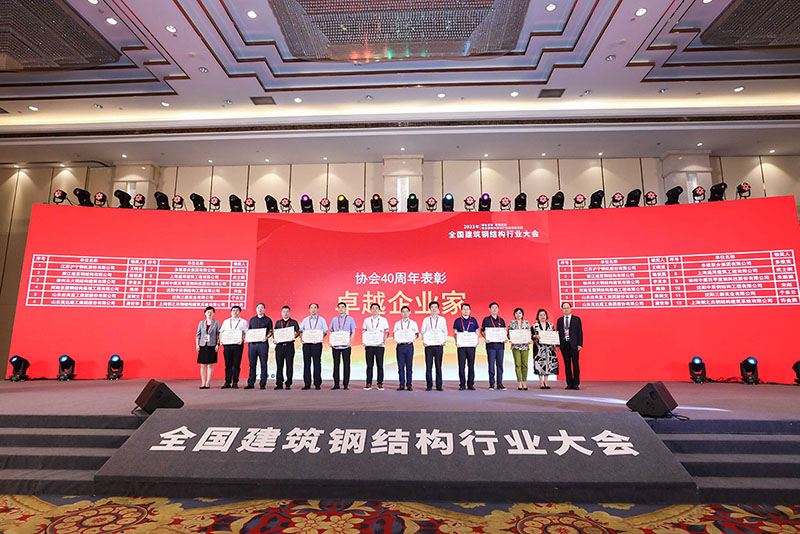 2023年6月2-4日2023年全國(guó)建筑鋼結(jié)構(gòu)行業(yè)大會(huì)在上海隆重召開(kāi),大會(huì)隆重表彰全國(guó)建筑鋼結(jié)構(gòu)行業(yè)先進(jìn)集體和先進(jìn)個(gè)人,中國(guó)建筑金屬結(jié)構(gòu)協(xié)會(huì)建筑鋼結(jié)構(gòu)分會(huì)副會(huì)長(zhǎng)、山東經(jīng)典重工集團(tuán)股份有限公司董事會(huì)主席苗樹(shù)文帶隊(duì)參會(huì),會(huì)上獲得多項(xiàng)榮譽(yù)。