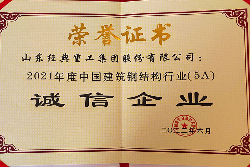 公司榮獲中國(guó)建筑鋼結(jié)構(gòu)行業(yè)5A誠(chéng)信企業(yè)稱號(hào)