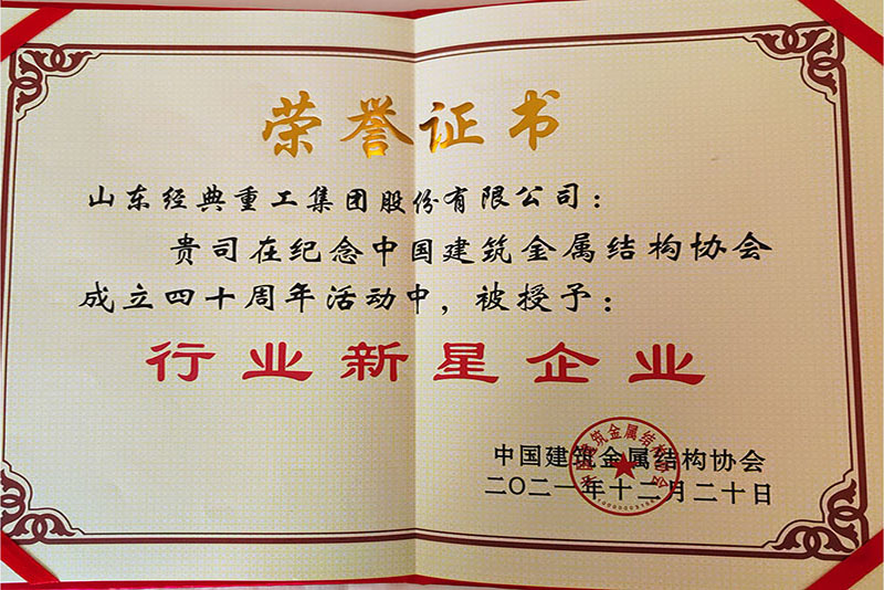 公司榮獲中國(guó)建筑金屬結(jié)構(gòu)協(xié)會(huì)行業(yè)新星企業(yè)稱號(hào)