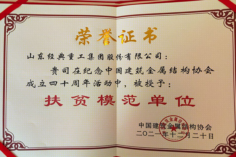 公司榮獲中國(guó)建筑金屬結(jié)構(gòu)協(xié)會(huì)扶貧模范單位稱號(hào)