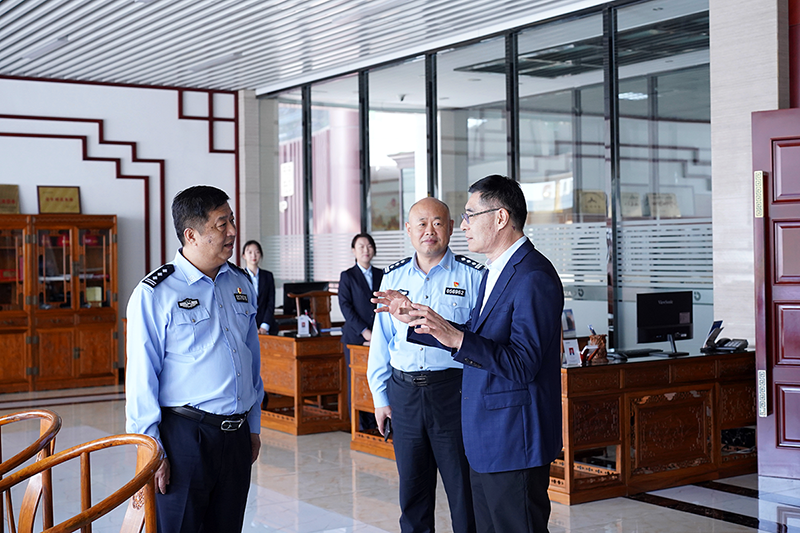 10月8日上午,濟(jì)寧市公安局兗州分局黨委副書記、政委姜治洲一行來(lái)我公司調(diào)研指導(dǎo)工作。集團(tuán)董事會(huì)主席苗樹文陪同調(diào)研。