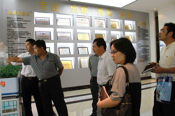 調研團一行不顧勞途奔波,到達公司后,首先參觀了集團公司營銷中心項目管理中心集團文化館,在文化館,集團董事長苗樹文簡單介紹了公司的發展歷程產品結構行業特性以及公司的現狀,隨后調研團領導深入生產一線,了解車間加工能力生產進度,具體詢問了員工的工作環境及生活狀況。