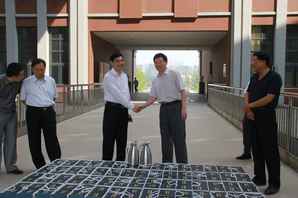 2013年9月6日上午,兗州市委常委,宣傳部部長初建偉,兗州市教育局局長張維國,兗州團市委書記徐晉,陪同經典集團董事長苗樹文一行為兗州實驗小學,東方中學,兗州一中的教師們送上了一份愛心禮物。